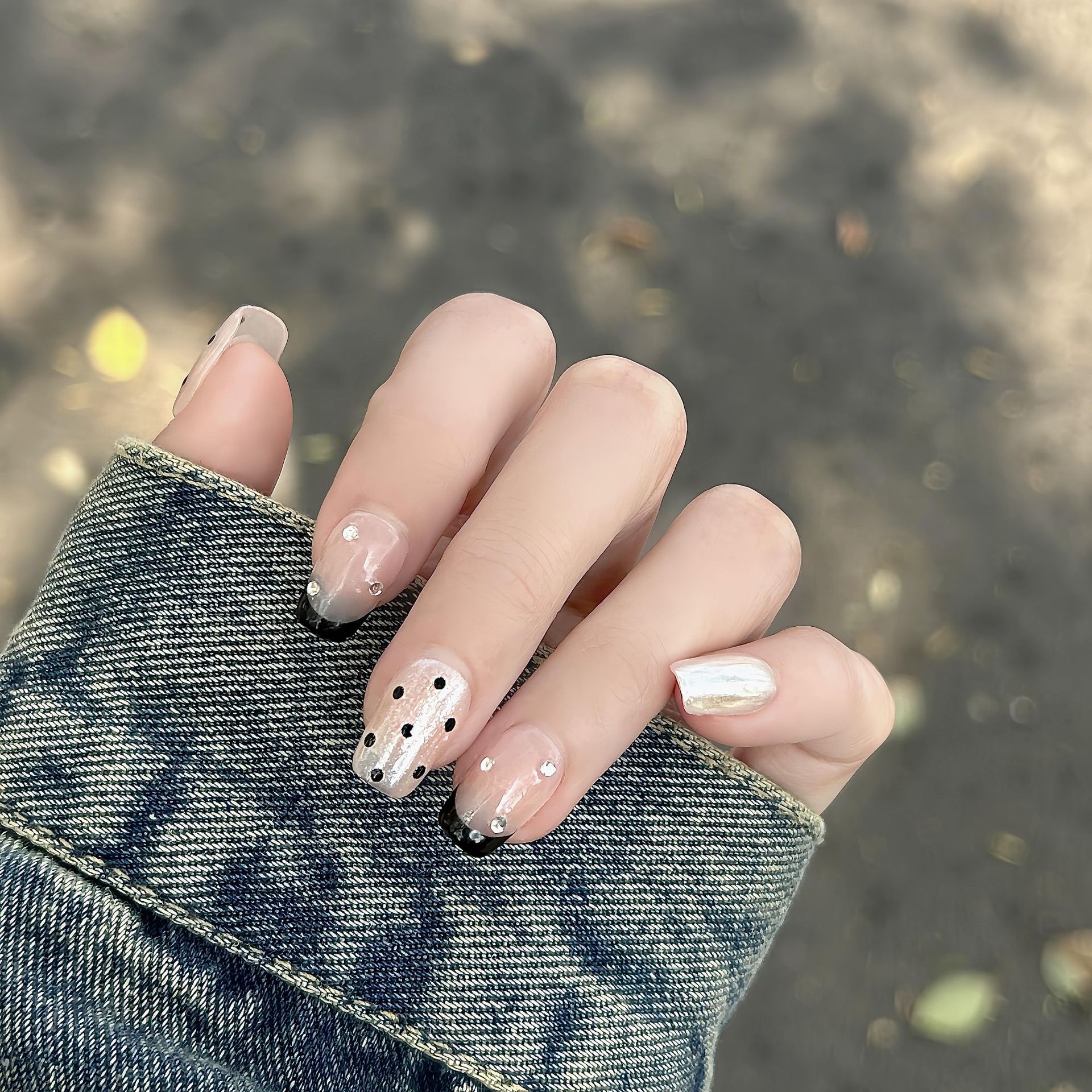 假指甲贴片短款穿戴甲欧美美甲法式银边美甲贴可拆卸学生甲片成品