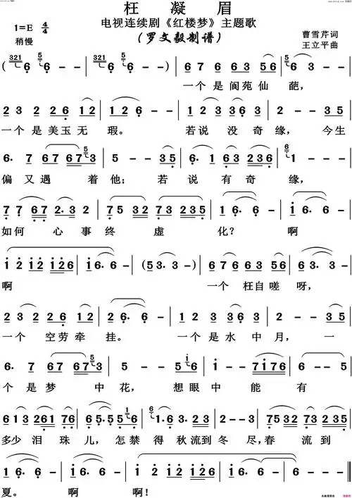 枉凝眉简谱-郑绪岚演唱-曹雪芹/王立平词曲