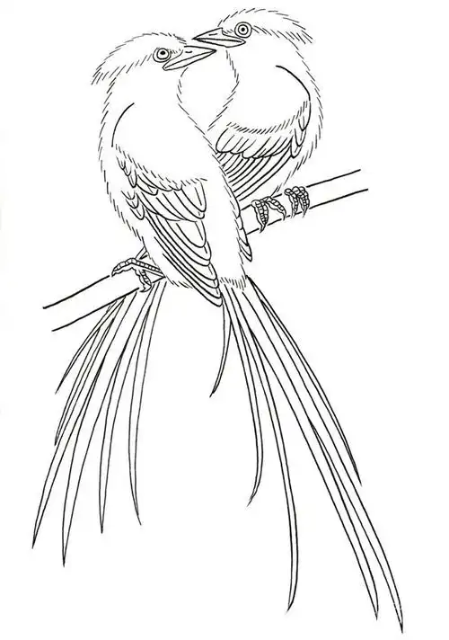 白描禽鸟蓝鹊的入门绘画教程(5)