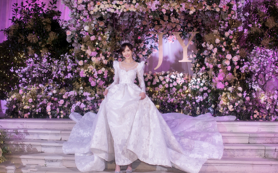 唐嫣婚纱照曝光采用1206朵玫瑰花枝叶相连耗时近5千小时