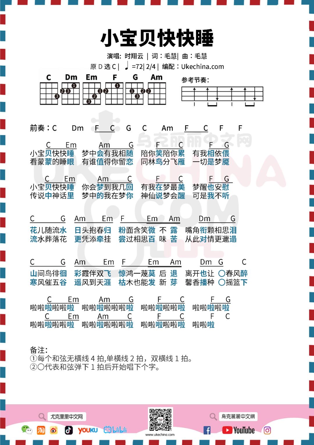 好听的温暖儿歌小宝贝快快睡尤克里里曲谱视频