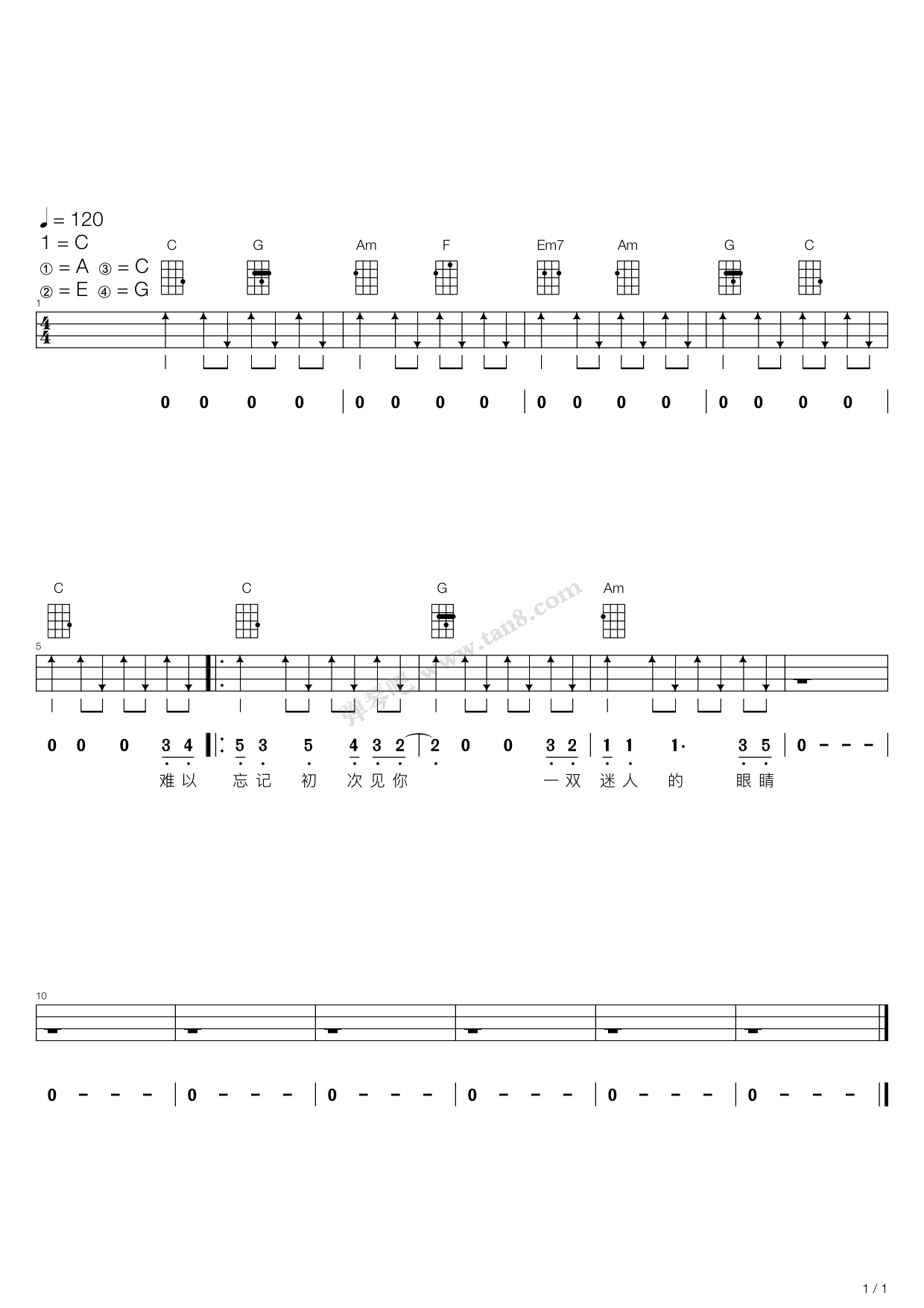 情非得已尤克里里谱_庾澄庆_ukulele谱_四线谱_图片谱_木木吉他网