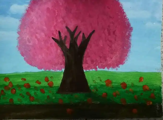 锡九美术学校南校区周六下午水粉班《春天的树》
