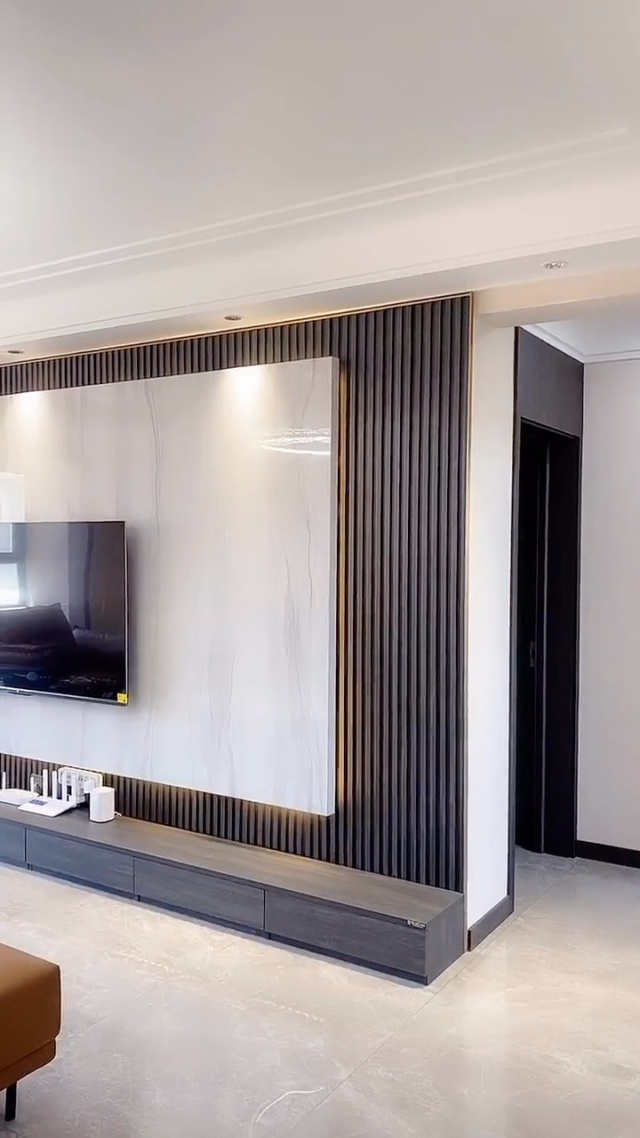 8款超好看悬空电视背景墙.利用悬挂做电视背景墙,将客厅功能分 - 抖音