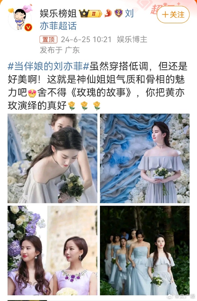 刘亦菲当过三次伴娘每次都低调穿搭刻意收敛美貌 ?