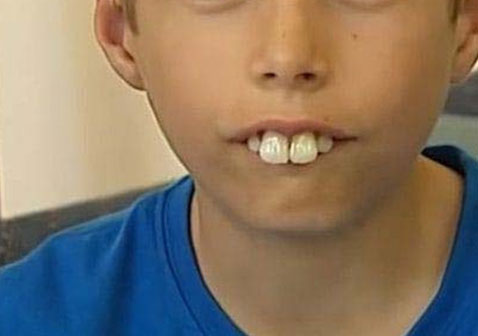 这是我儿子的牙齿,由于鼻炎加张嘴呼吸,他的牙齿形成了龅牙!