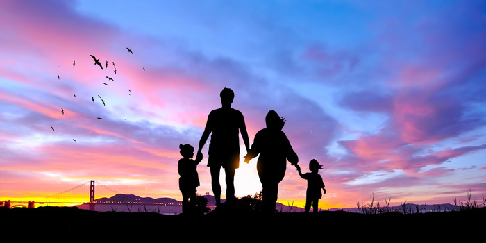 一家四口夕阳摄影图合成剪影背景