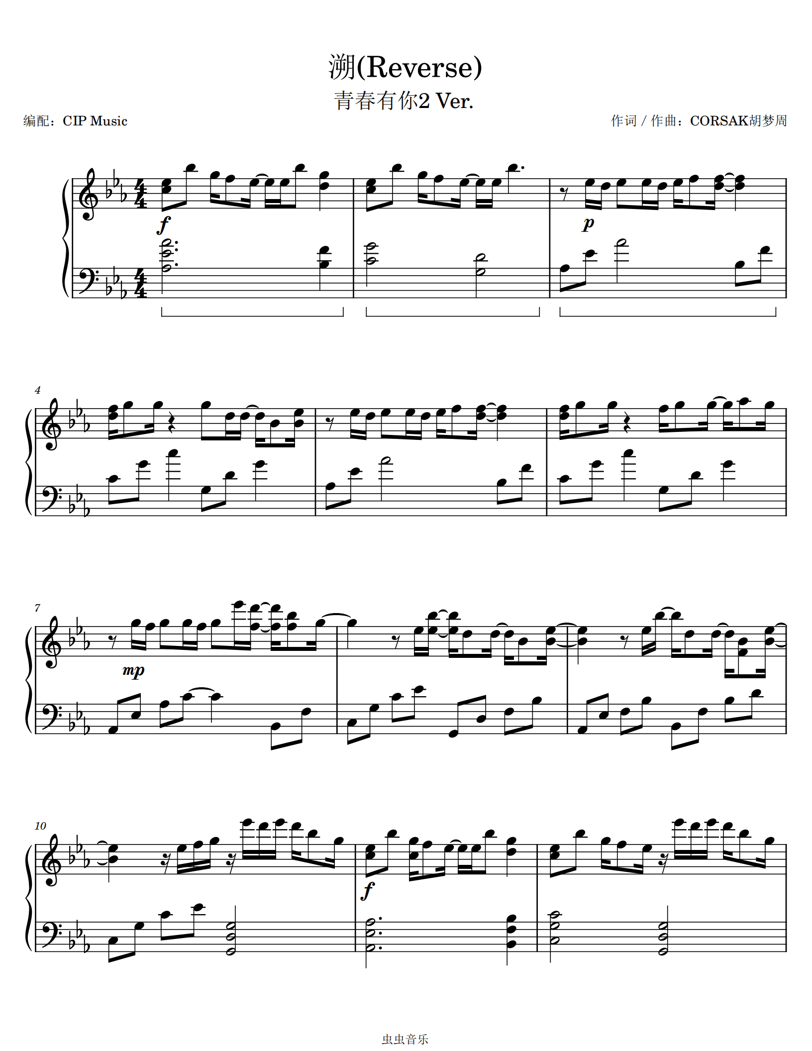 《溯reverse》青春有你2版本钢琴谱-cip music (本站已停更)-虫虫钢琴