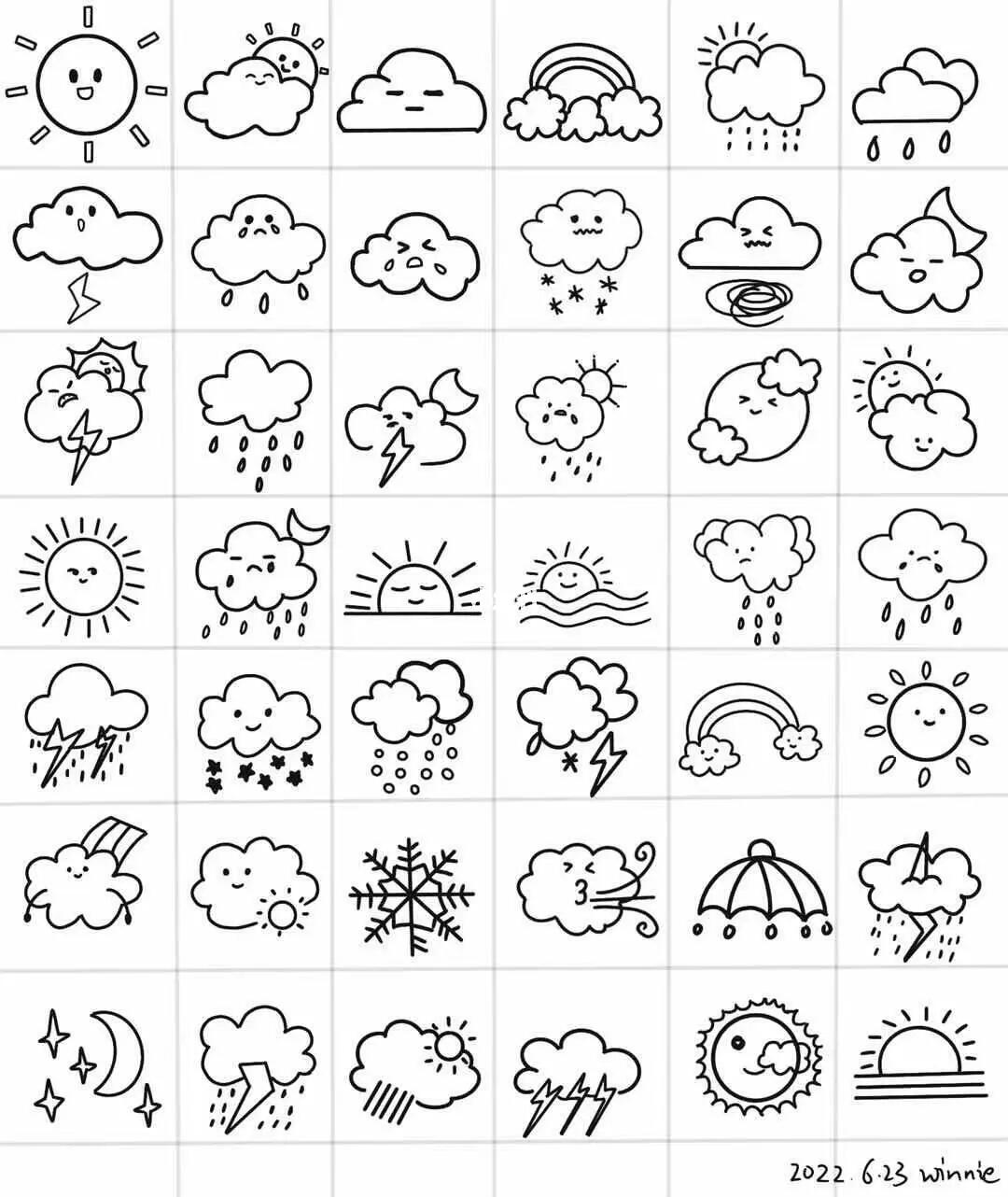 儿童简笔画教程——天气小图标 快带上孩子,一起画吧~#跟着抖 - 抖音