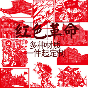 fq21 红色故事长征爬雪山剪纸贴纸装饰画镂空刻纸双面红宣纸