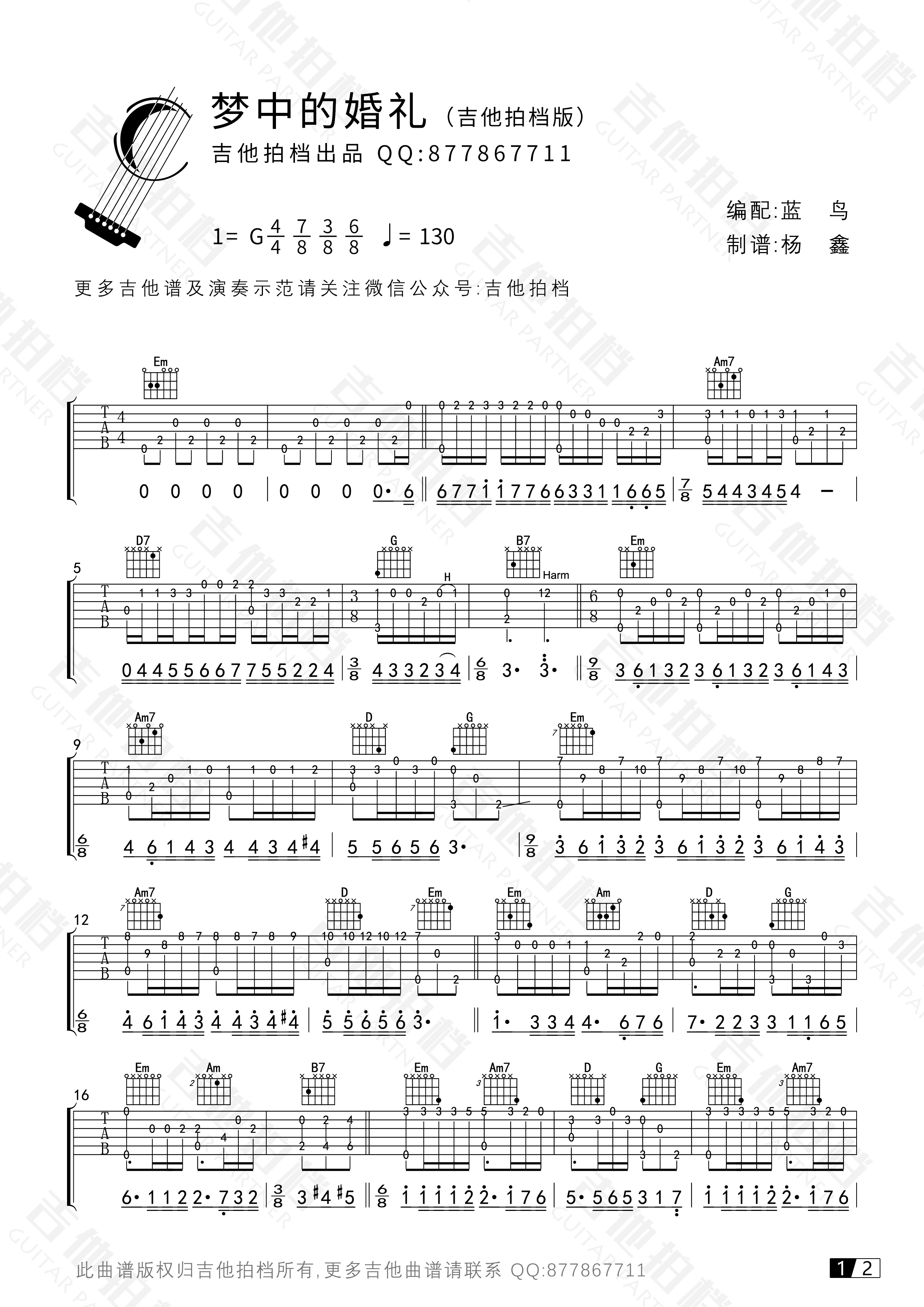 梦中的婚礼吉他谱视频演奏示范吉他拍档出品