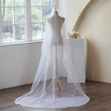 新娘头纱长款拖尾3米宽婚纱婚礼遮面双层素纱荷叶边大头纱面纱