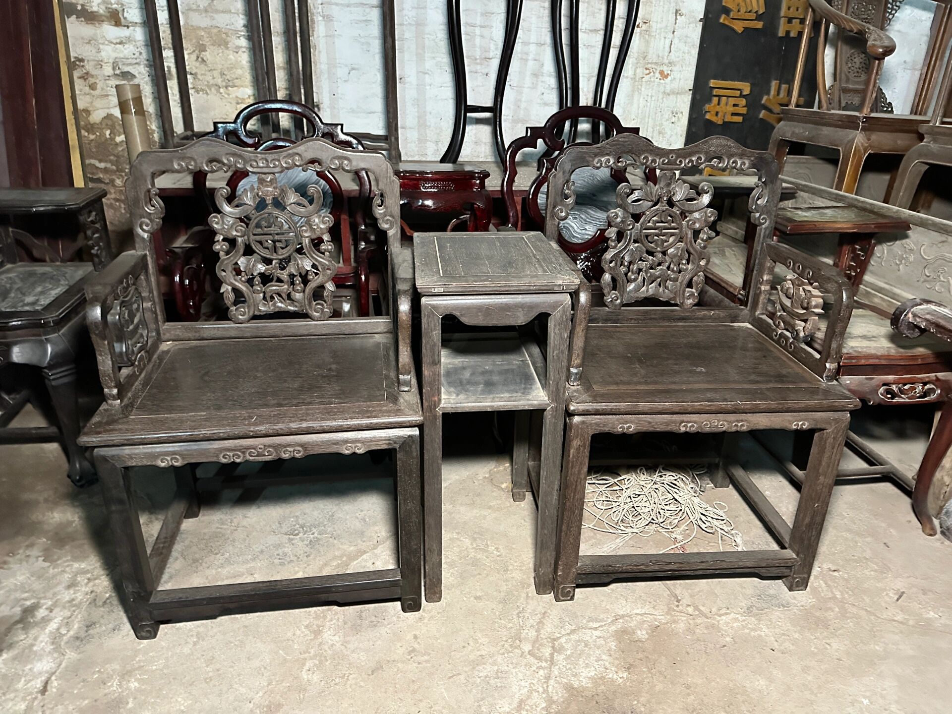 清代铁力木坤甸太师椅 这是两张张清代的坤甸木太师椅子,是古家具中