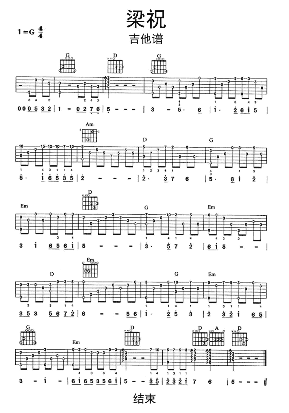 《梁祝吉他谱》_梁山伯与祝英台_g调_吉他图片谱1张