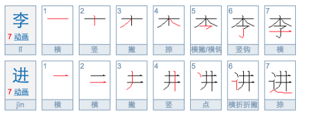 李进二字笔画是多少