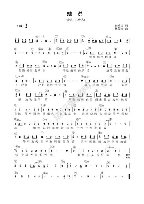 歌曲简谱林俊杰她说他说简谱和弦功能谱流行弹唱网
