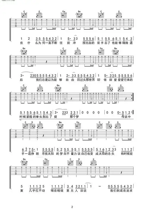 吴青峰 蜂鸟 g调吉他谱 高清六线谱g调六线pdf谱吉他谱-虫虫吉他谱