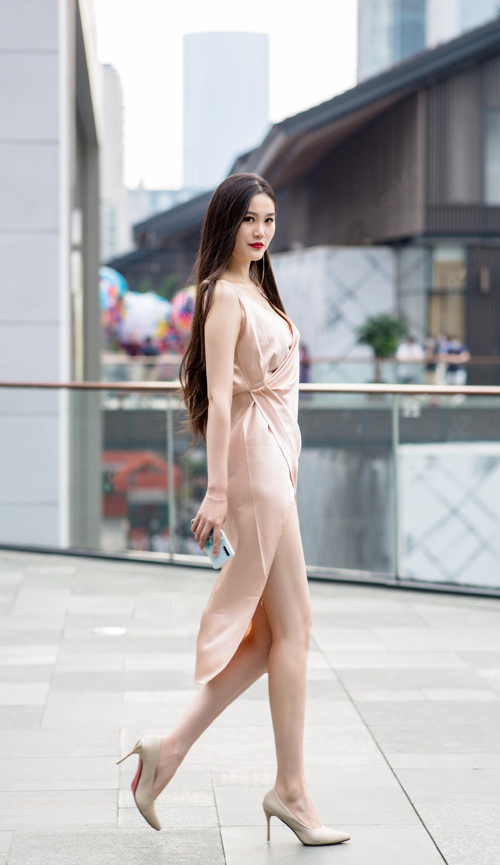 香槟金丝质连衣裙,尽显优雅女人味,性感迷人