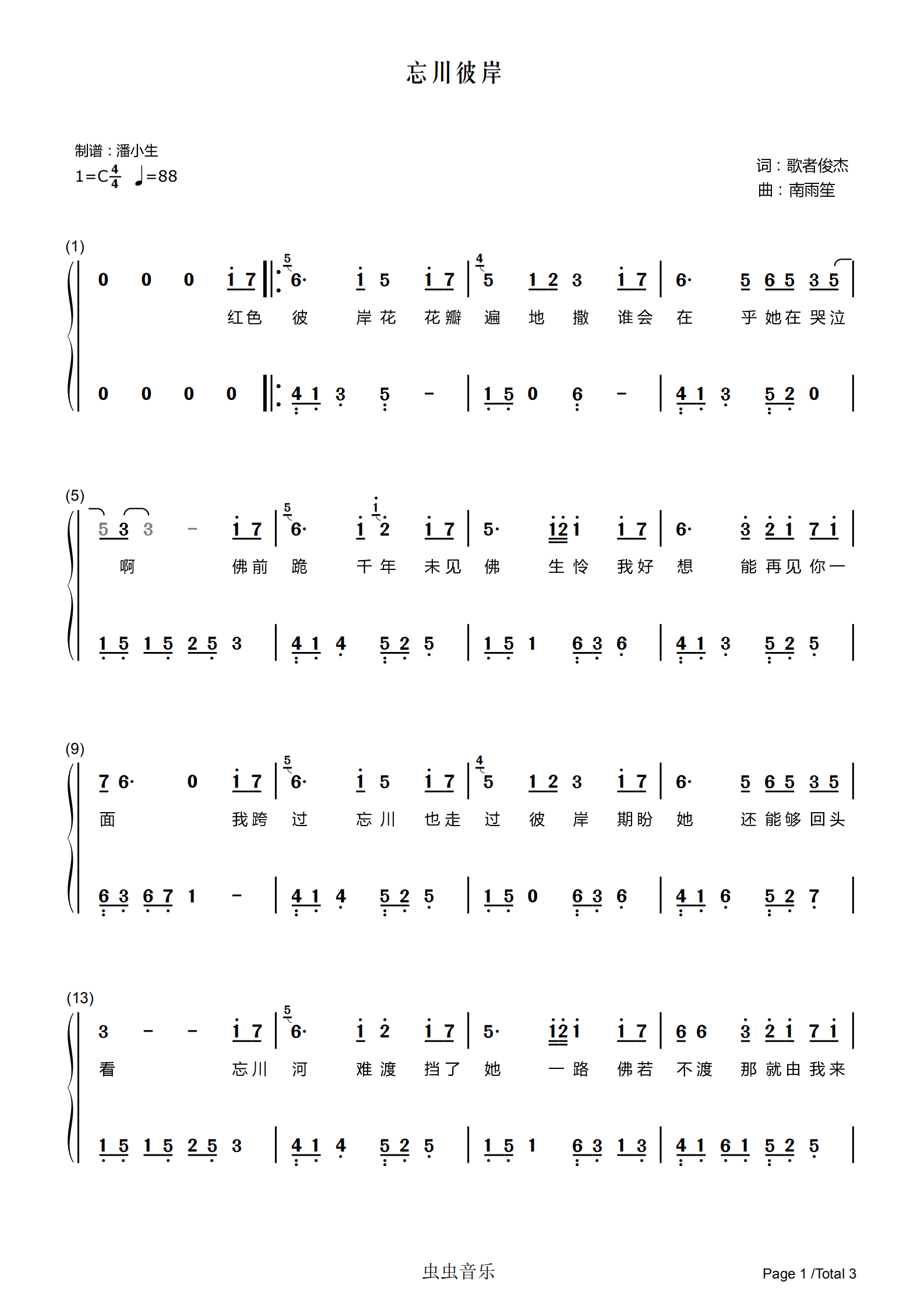 忘川彼岸 (简谱) 谱友园地