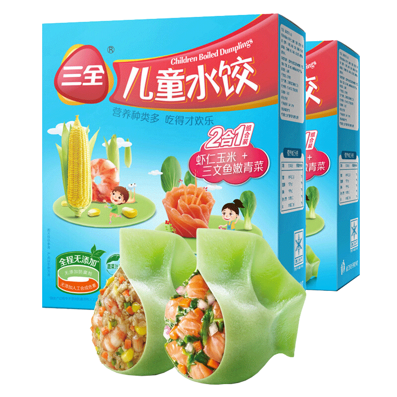 三全儿童水饺菠菜鸡肝口味300g42只15件