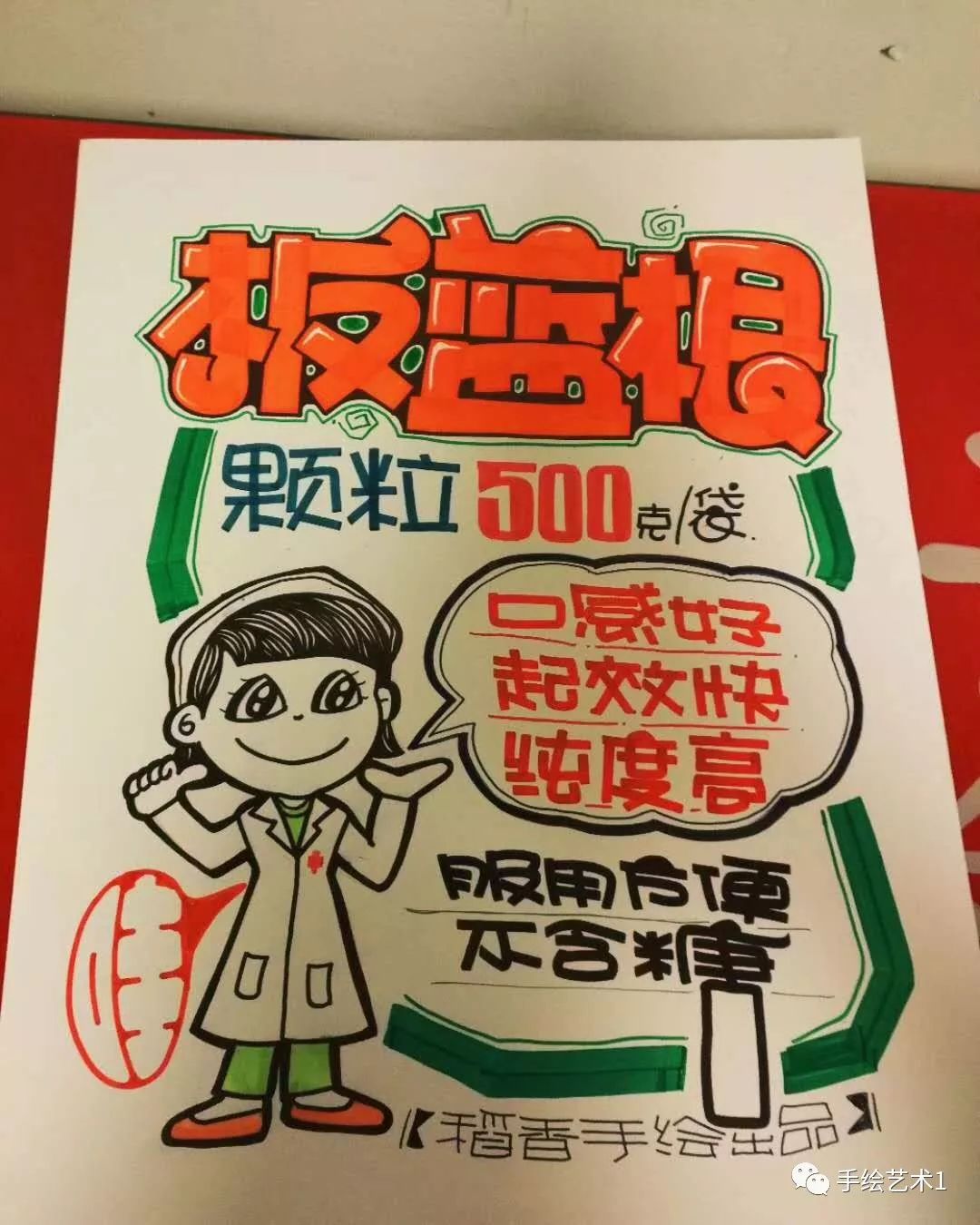 板蓝根颗粒手绘pop作品【带插画】