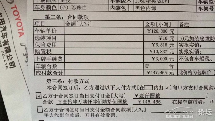 网友上传的雷凌购车合同款项!