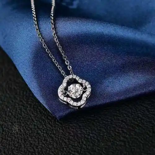 s925灵动四叶草莫桑项链仿真钻石吊坠锁骨颈链女项链