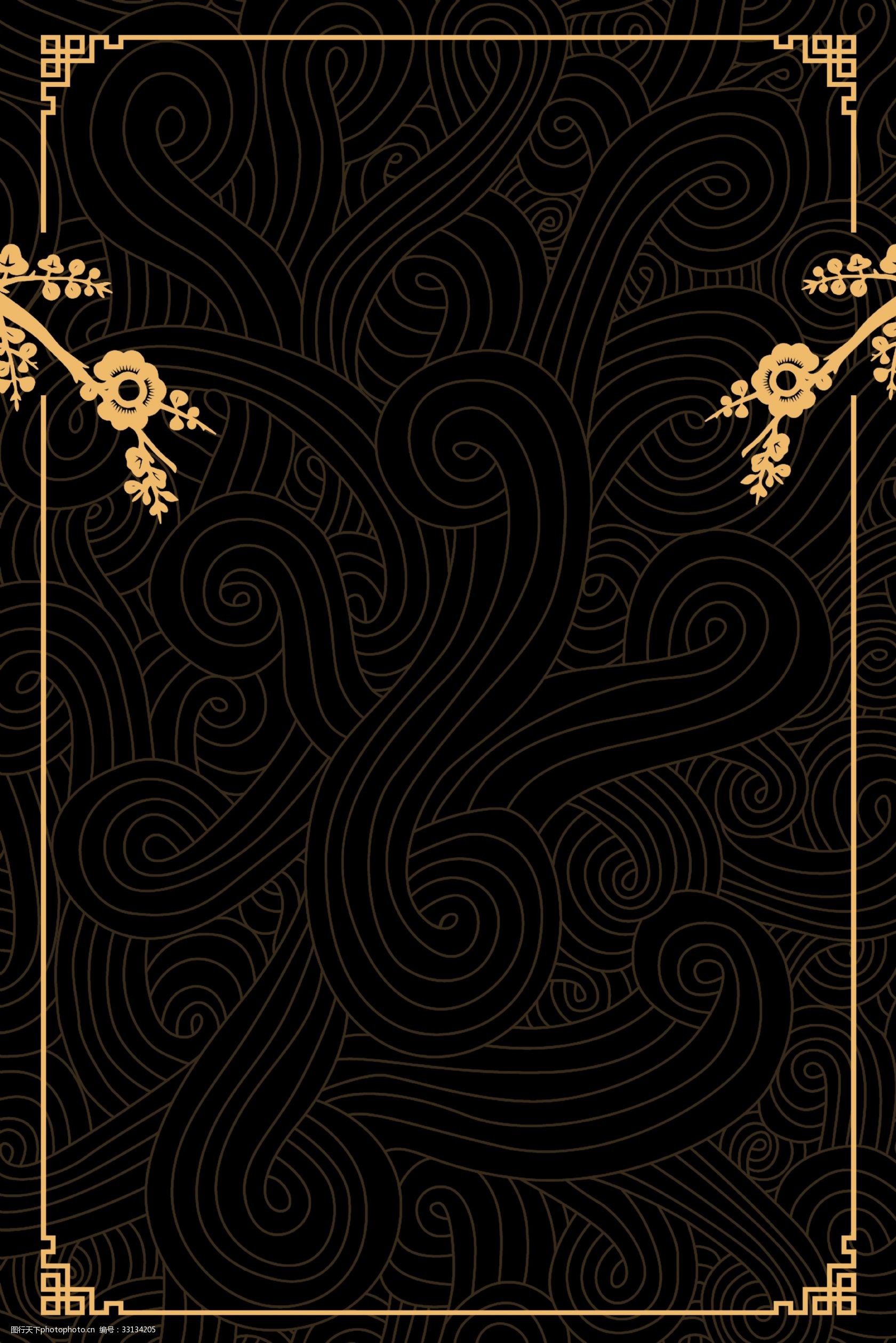 典雅高端黑色古风线条海报背景 典雅 复古 中国风 文艺 高端 简约