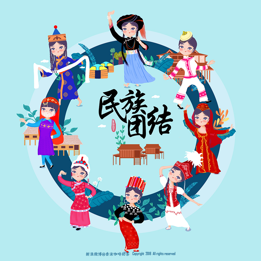 民族插画 56个民族 民族人物 民族团结关注私信版权赣州/插画师/110