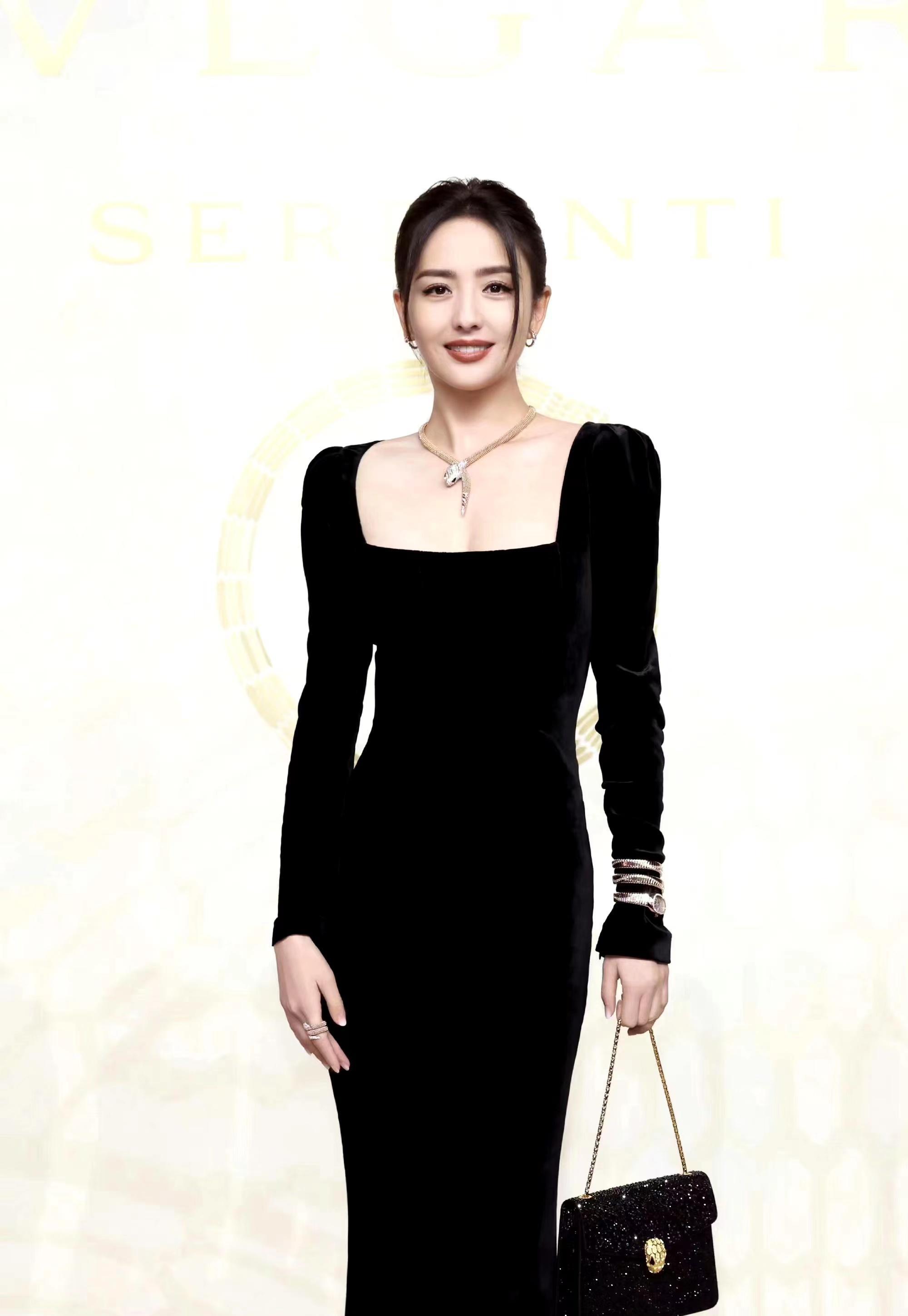 佟丽娅身穿酒红色丝绒礼服出席活动,优雅贵气!_造型_长裙_身材