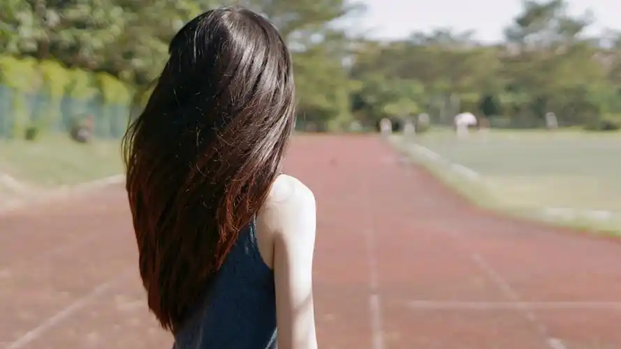 夏天,运动场,操场,跑道,漂亮女生,背影,长头发,唯美,桌面壁纸