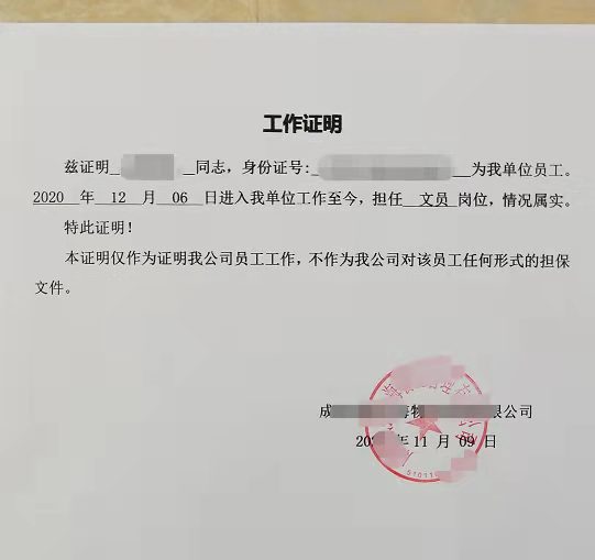 工作证明原件图片