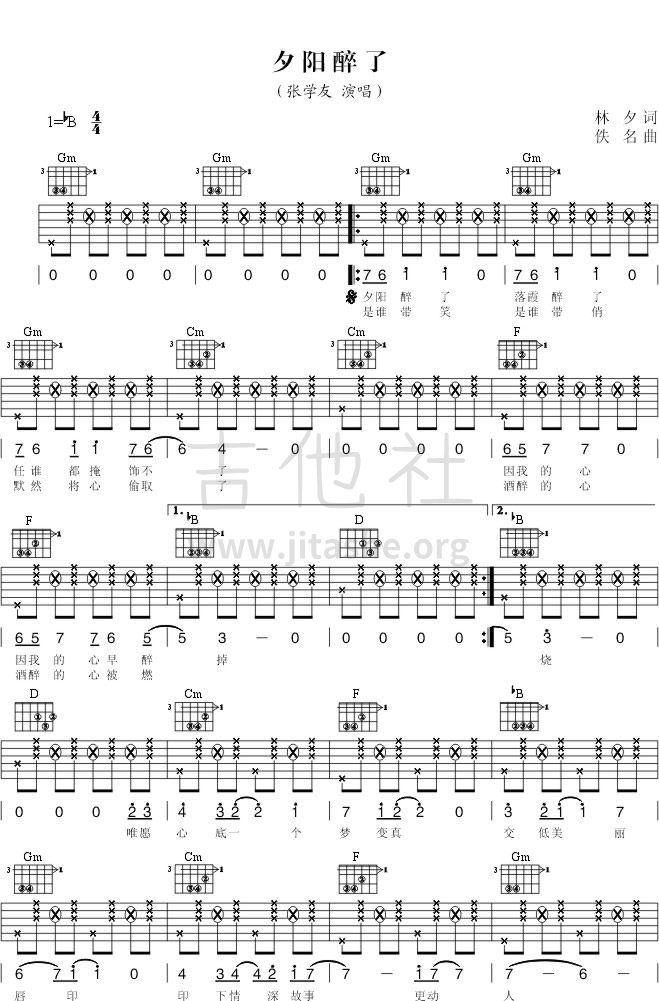 《夕阳醉了》,张学友(六线谱 吉他谱吉他谱 第1页