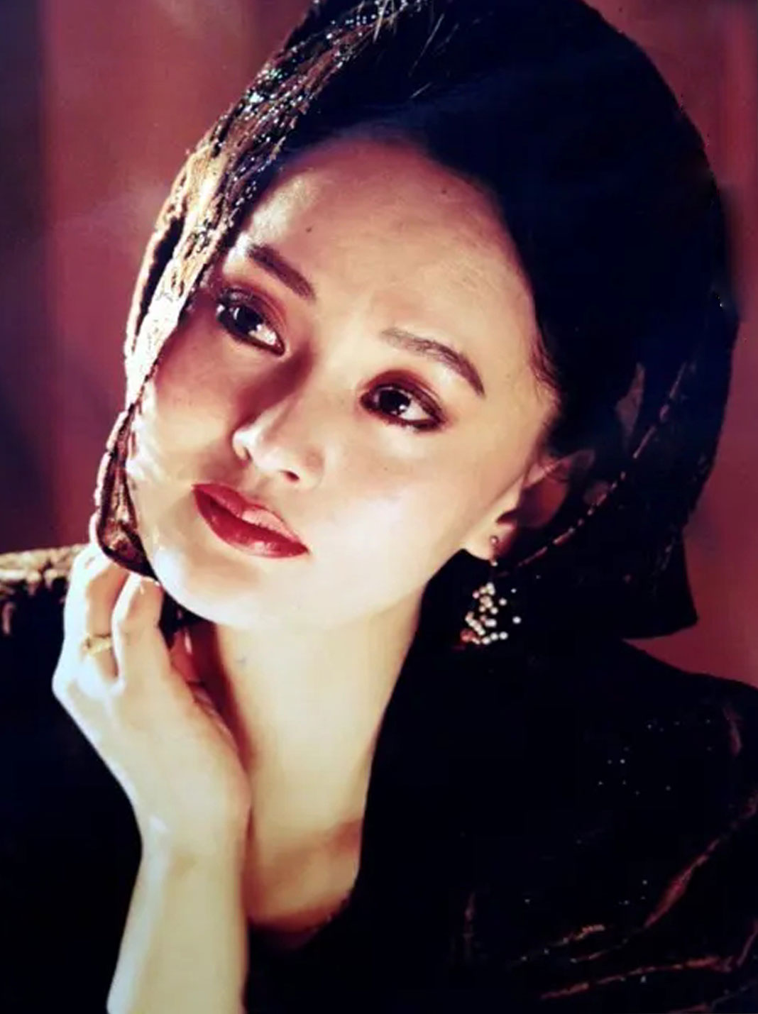 58岁大宋佳依然霸气到位一袭黑裙配红眼影尽显东方韵味