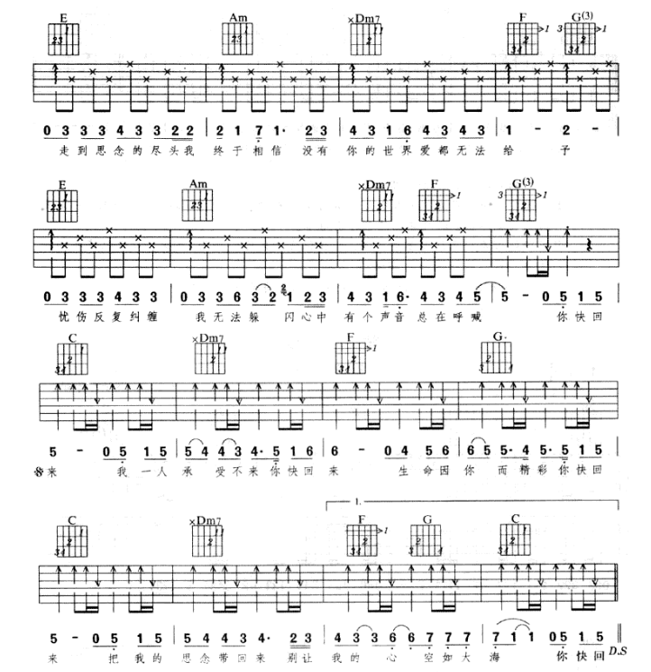 你快回来(吉他谱)1