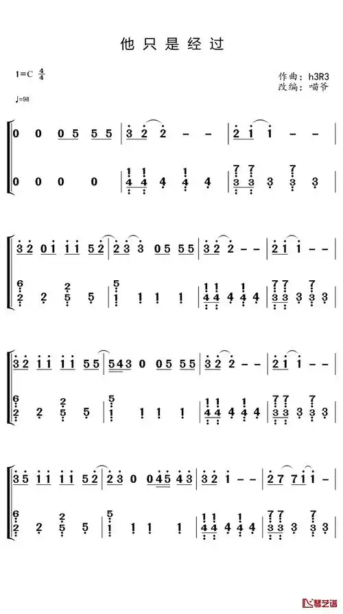 他只是经过钢琴简谱h3r3演唱