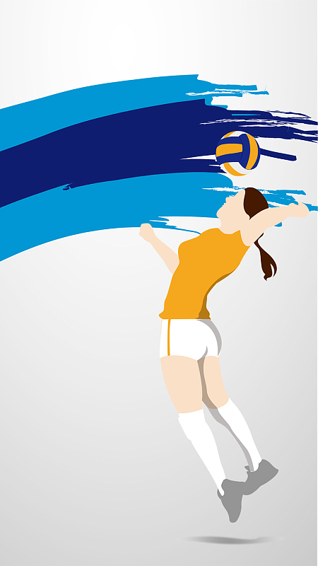 奥运会运动员排球比赛矢量海报女排精神插画