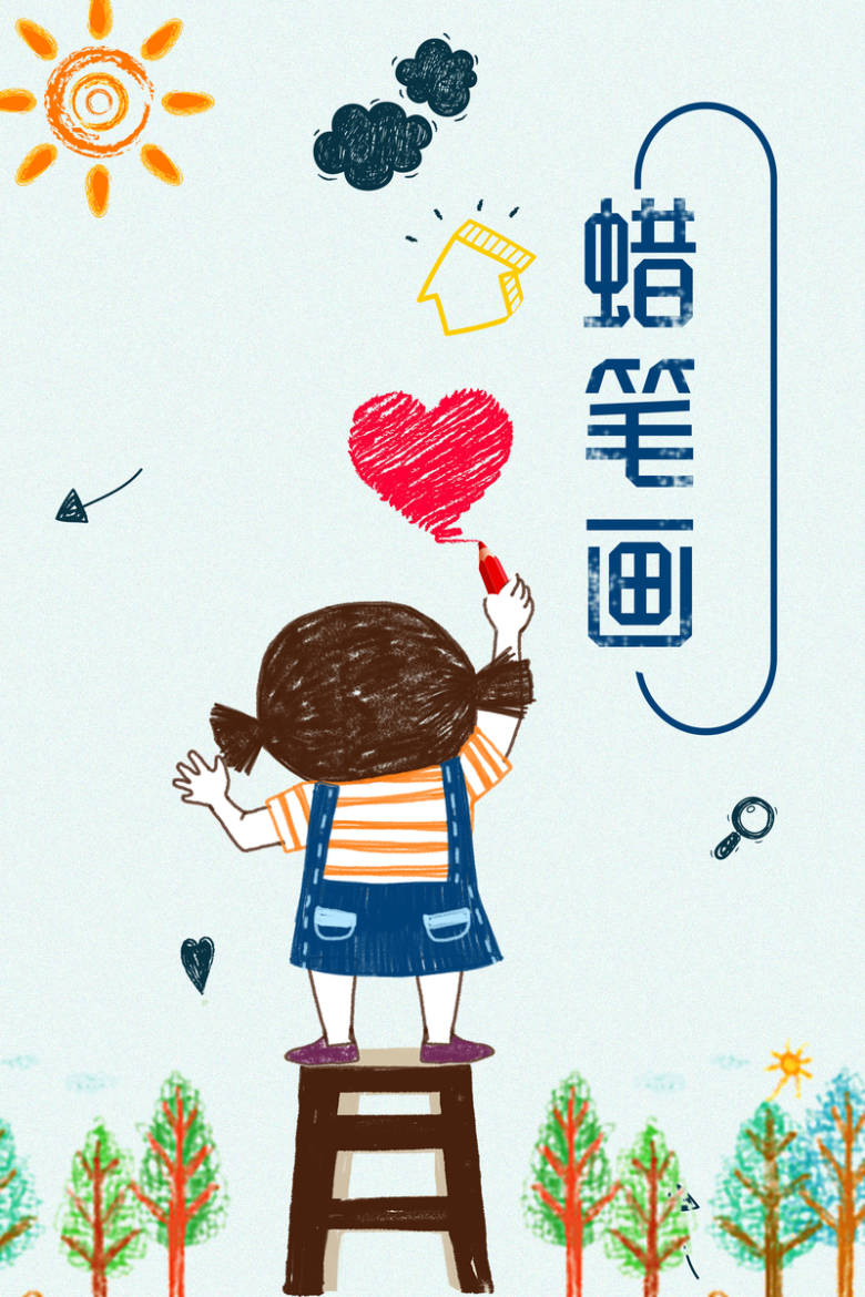 蜡笔画幼儿园招生蓝色卡通手绘招生海报