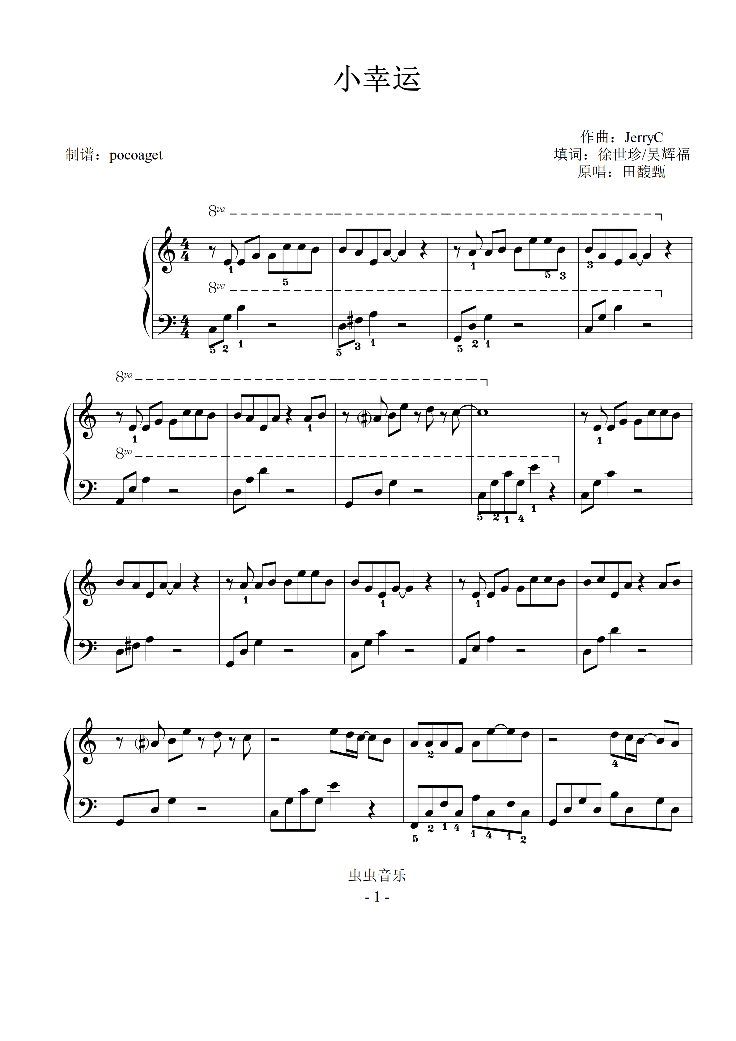 《小幸运,钢琴谱》幽幽,幽幽(五线谱 钢琴曲 指法)-弹吧|蛐蛐钢琴网