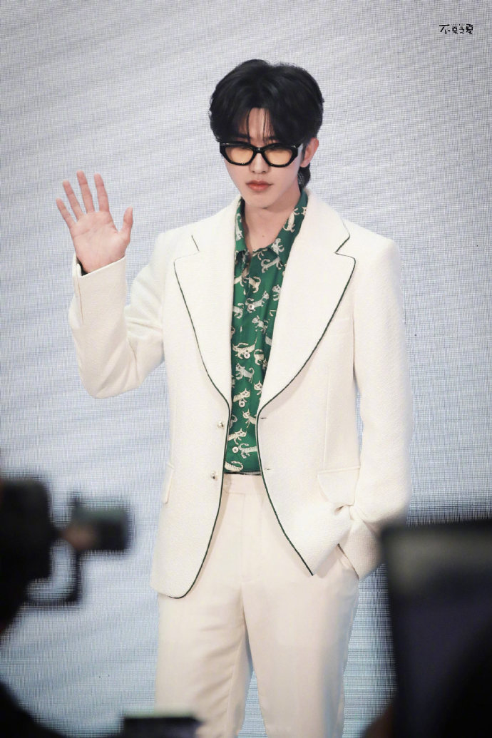 蔡徐坤白色西装 蔡徐坤珠海出席品牌活动现场饭拍~一身白色look的白马