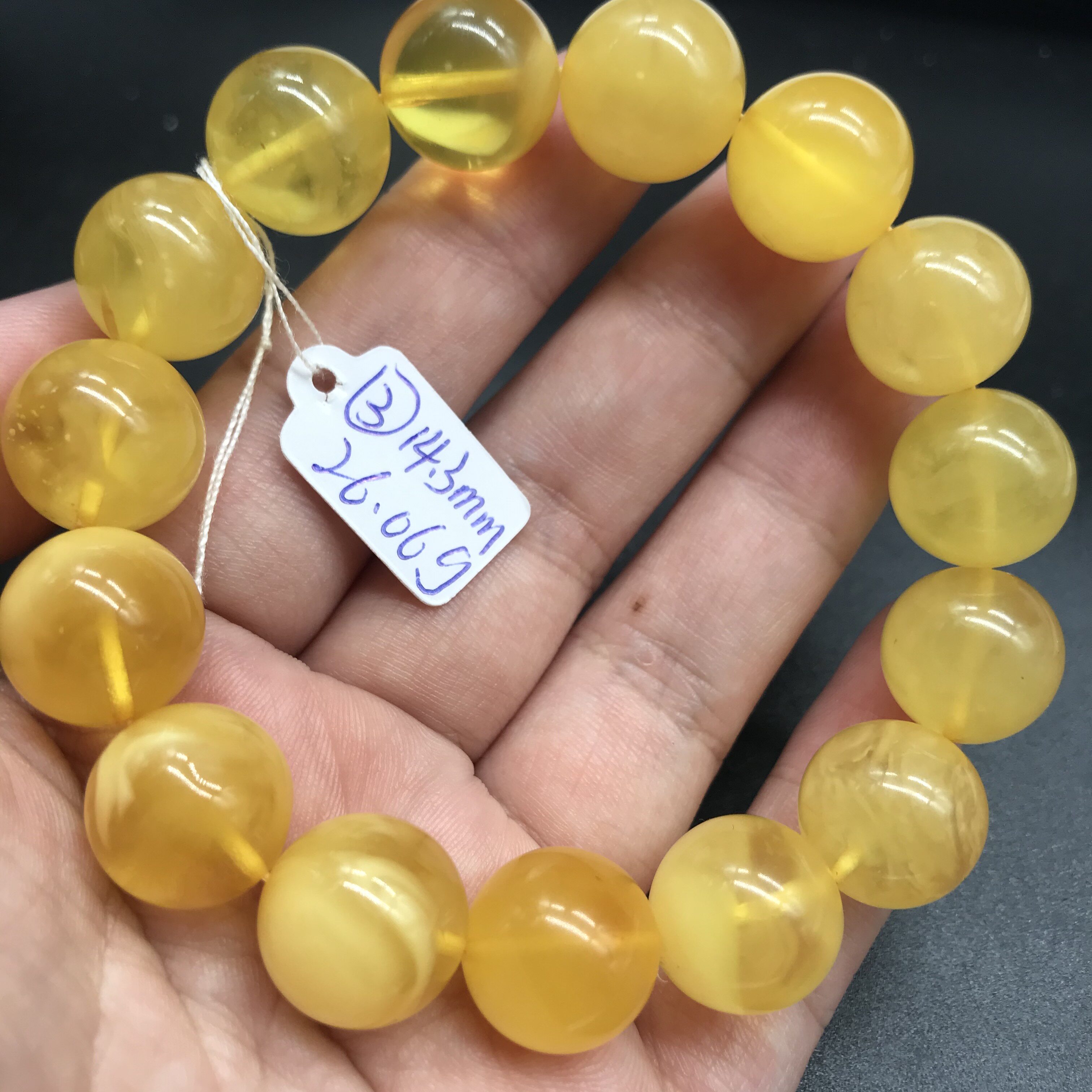 手串天然原矿琥珀蜜蜡圆珠颗粒保真支持复检手链