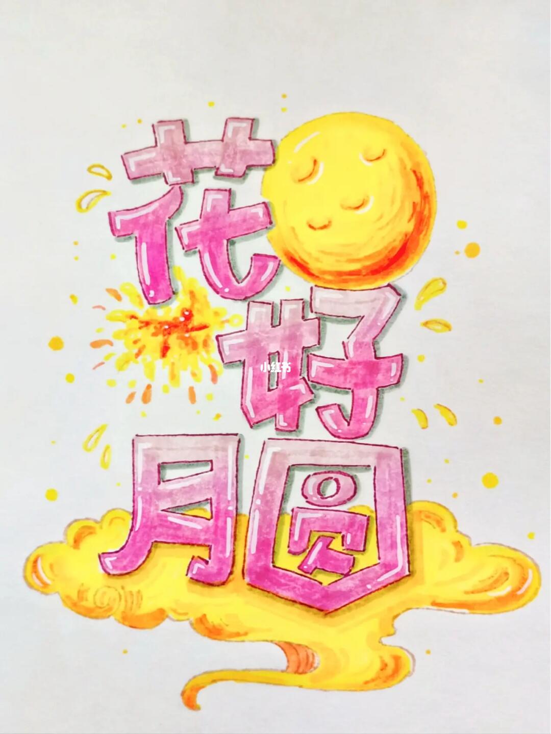 绘画 #临摹 #马克笔 #pop #中秋节 #中秋节艺术字