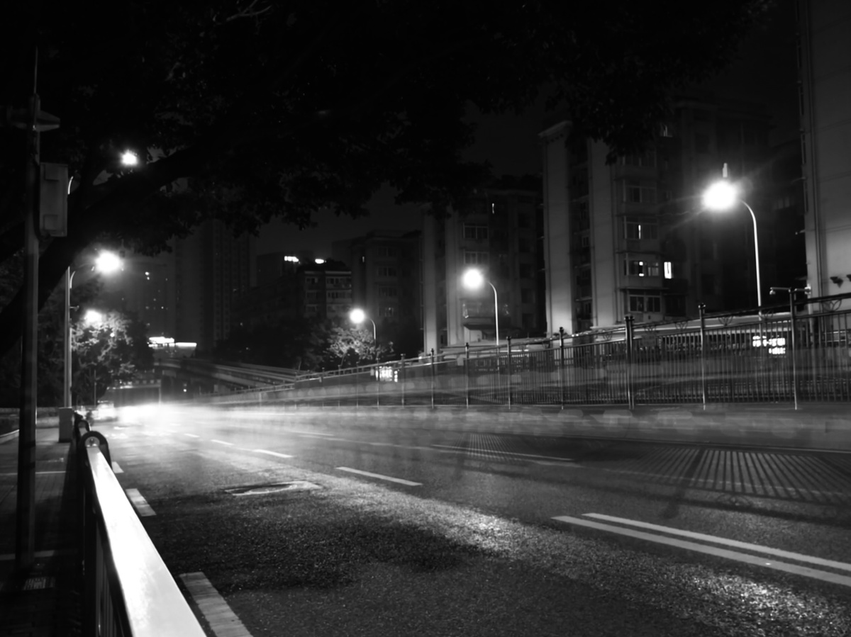 在黑的夜晚也有路灯在孤独的路上也有飞驰而过的汽车