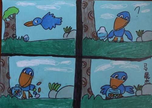 四格漫画小故事简笔画乌鸦喝水