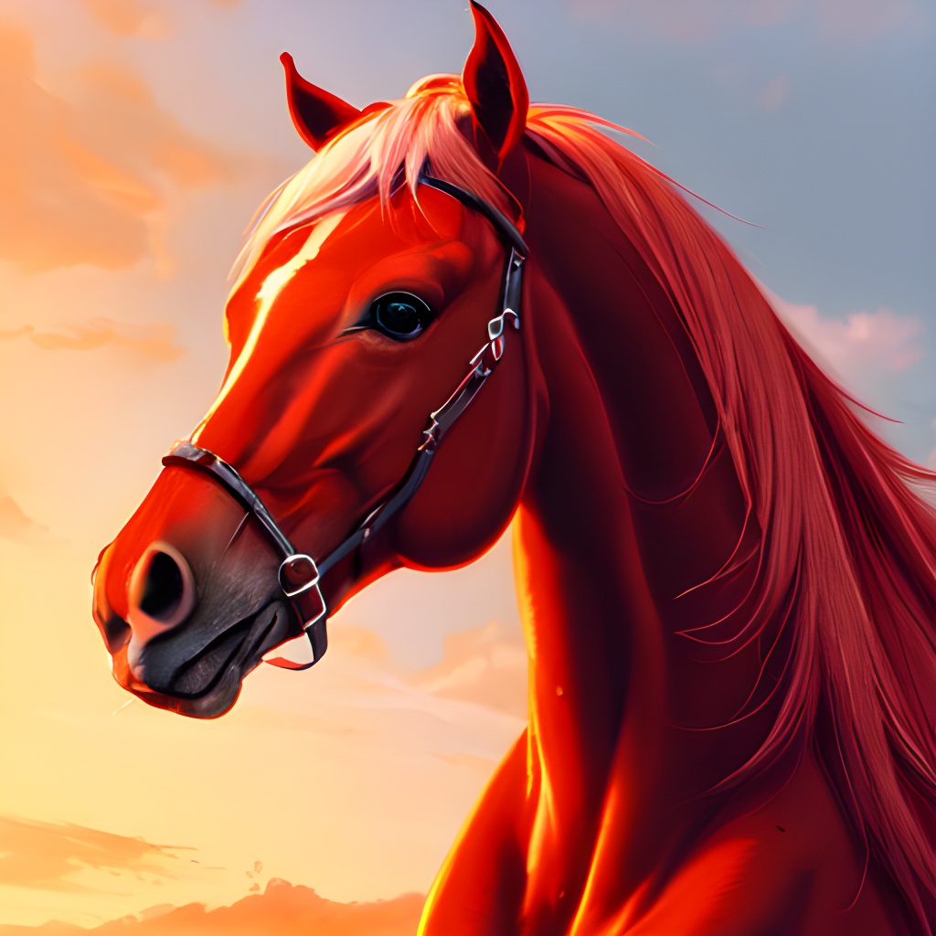 明亮的发光矢量插图的一匹奔腾的马.多汁的黄红色背景