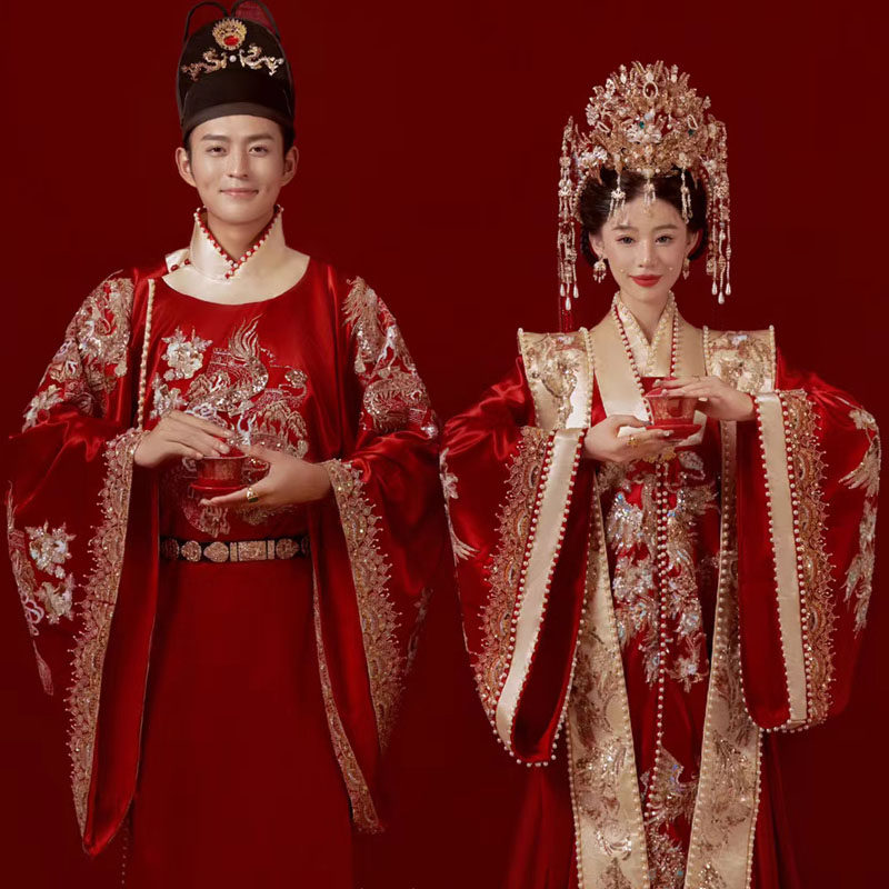 汉服婚纱中式婚礼新娘服秋季结婚古装秀禾服凤冠霞帔婚服情侣套装