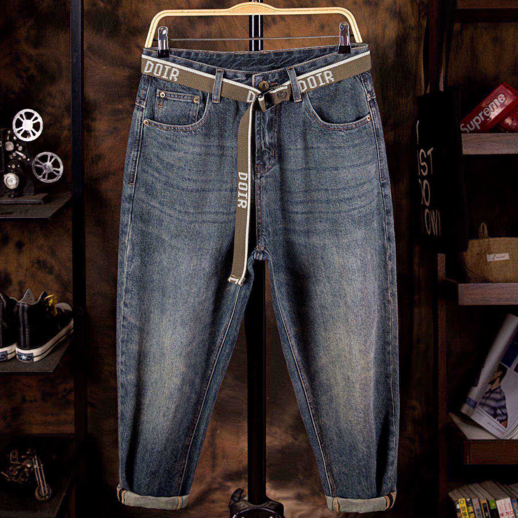 秋季萝卜裤男士宽松牛仔裤男直筒哈伦裤港风潮牌弹力修身休闲长裤