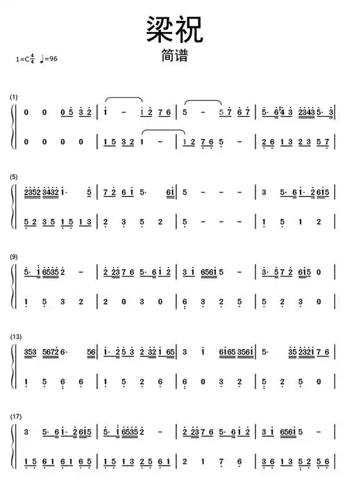 梁祝-c调好听简版双手简谱预览1