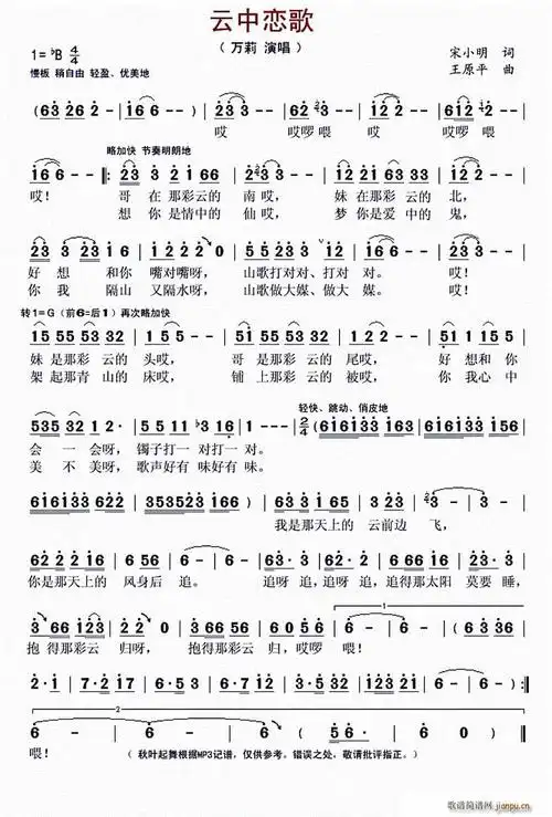 云中恋歌简谱歌词万莉演唱秋叶起舞记谱上传