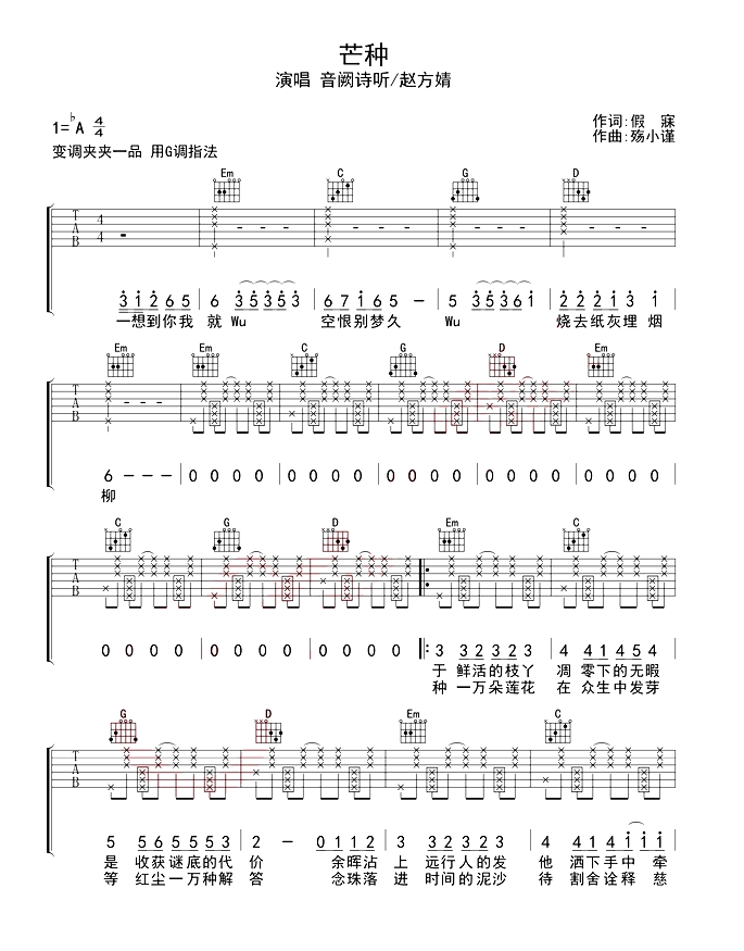 芒种吉他谱_赵方婧_g调_吉他伴奏弹唱六线谱(高清谱)1
